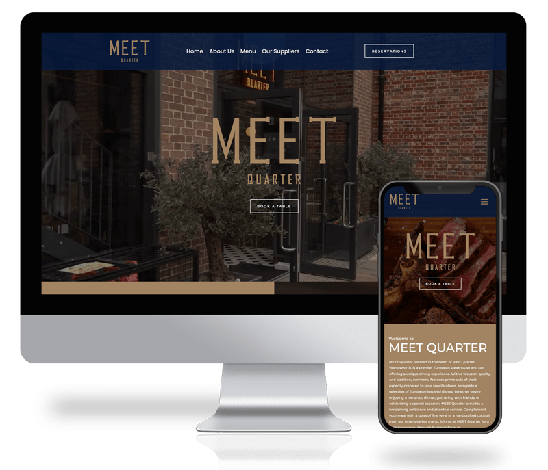 We proudly partnered with MEET Quarter to bring their vision to life. We developed a compelling brand identity, including a distinctive logo and cohesive colour scheme, that captures the essence of their European steakhouse and bar. We designed an intuitive and visually appealing website that showcases their menu and ambience. Additionally, we managed their social media presence, creating engaging content that resonates with their audience and drives customer engagement. Through our comprehensive branding and digital strategies, we successfully elevated MEET Quarter’s presence in the vibrant Ram Quarter, Wandsworth.